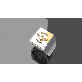 Body of the ring pure silver 925/1000, insignia 9 carat gold 375/1000